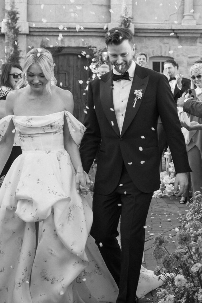 The wedding festivities were filled with joy and laughter. Kelley and Lach incorporated their friends into intimate moments, such as their first dance, which quickly transformed into a group dance. Australian traditions like the “Nutbush City Limits” line dance brought a touch of Lach’s heritage to the party. Kelley also changed into a slimmer dress for the evening, allowing her to dance the night away with comfort and style.