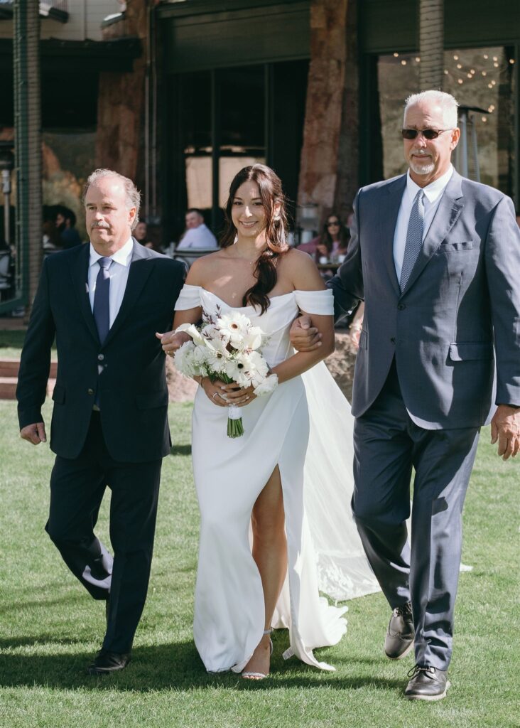 Jessica and Zak began their day bright and early with a 9 a.m. first look overlooking the red rock formations. The soft morning light, quiet mountain air, and early fall breeze set the stage for one of the most intimate moments of the day.
