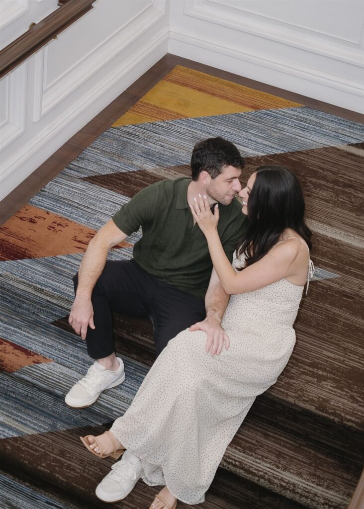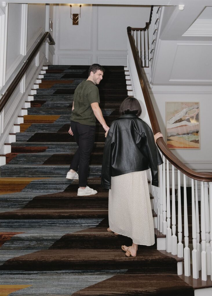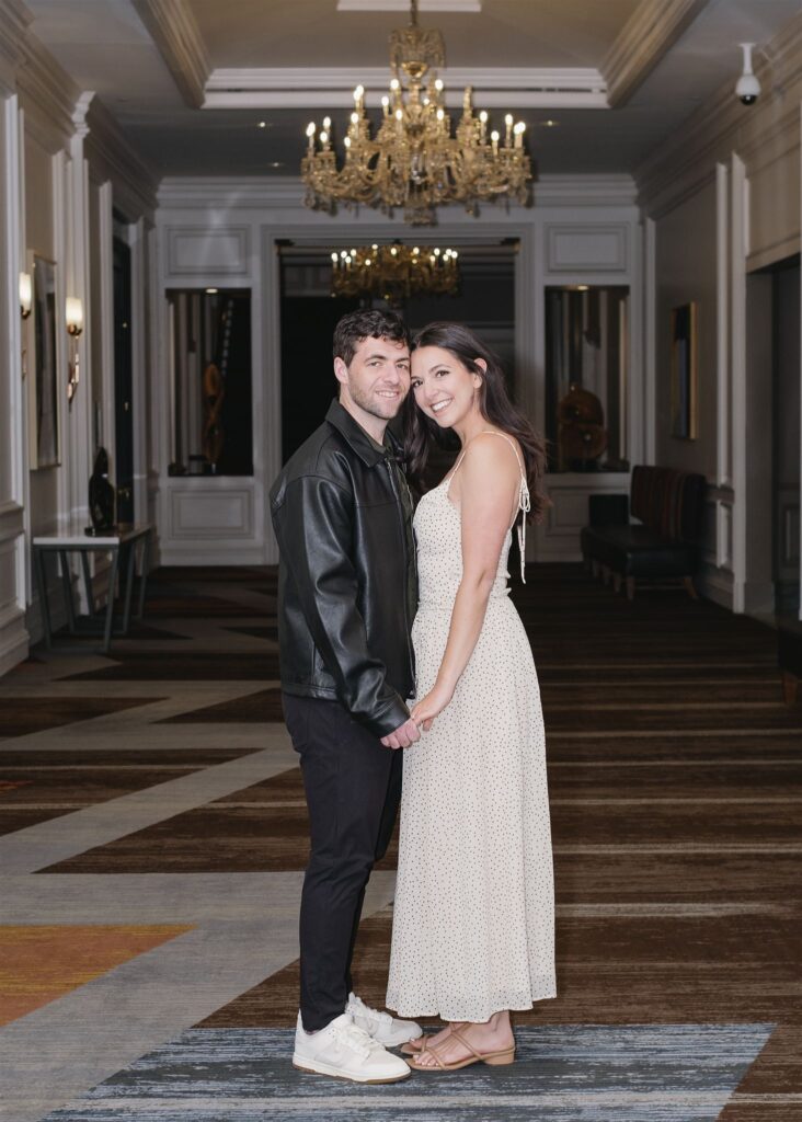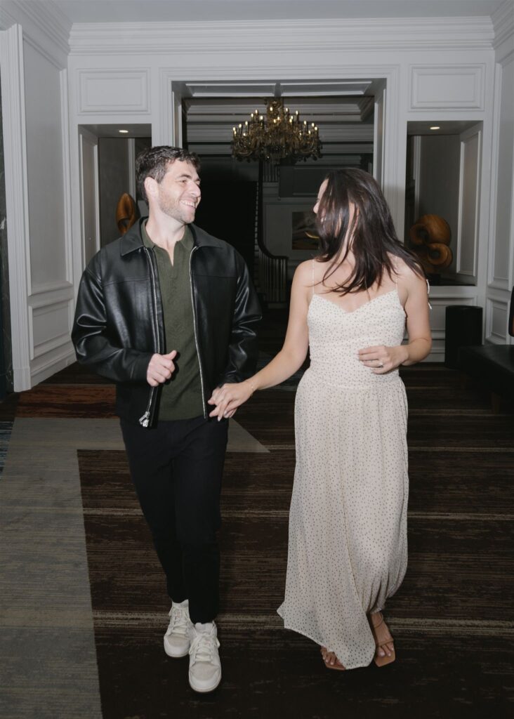 The hotel’s design blends warmth and sophistication, making it ideal for couples who want engagement photos that feel timeless, intentional, and a little bit different.